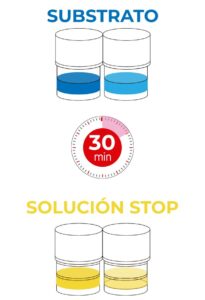 - Resultados: Lectura fotométrica a 450 nm disponible en 90 minutos.