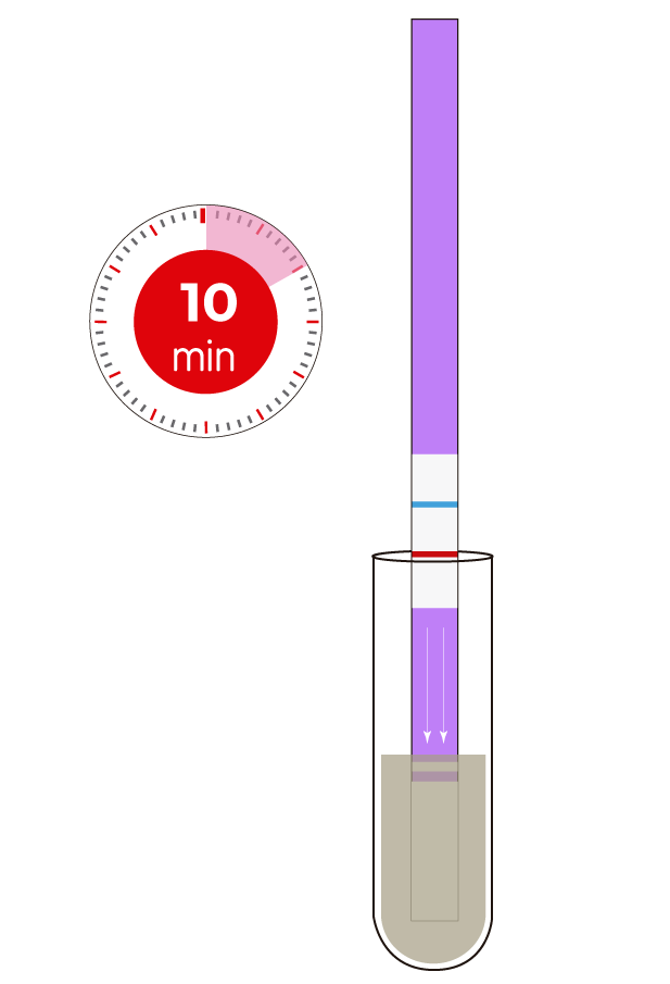 Solo hay que mezclar una gota de leche con unas gotas de la solución de análisis e introducir la tira reactiva.