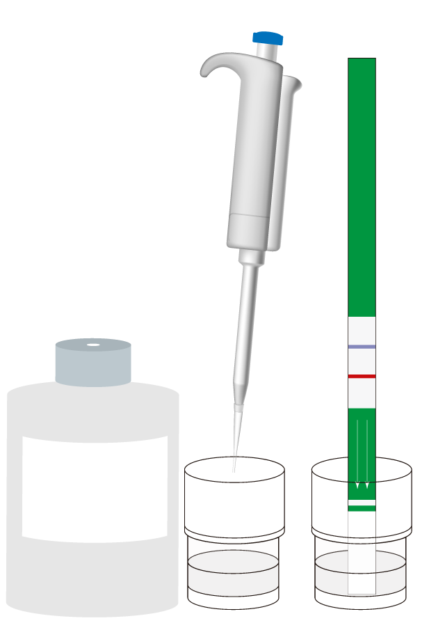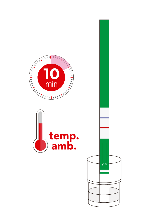 Test rápido inmunocromatográfico basado en la detección de inmunoglobulinas G (IgG) de cabra con anticuerpos específicos. Cada lote se parametriza para que el lector IRIS cuantifique con exactitud la mezcla de leche.