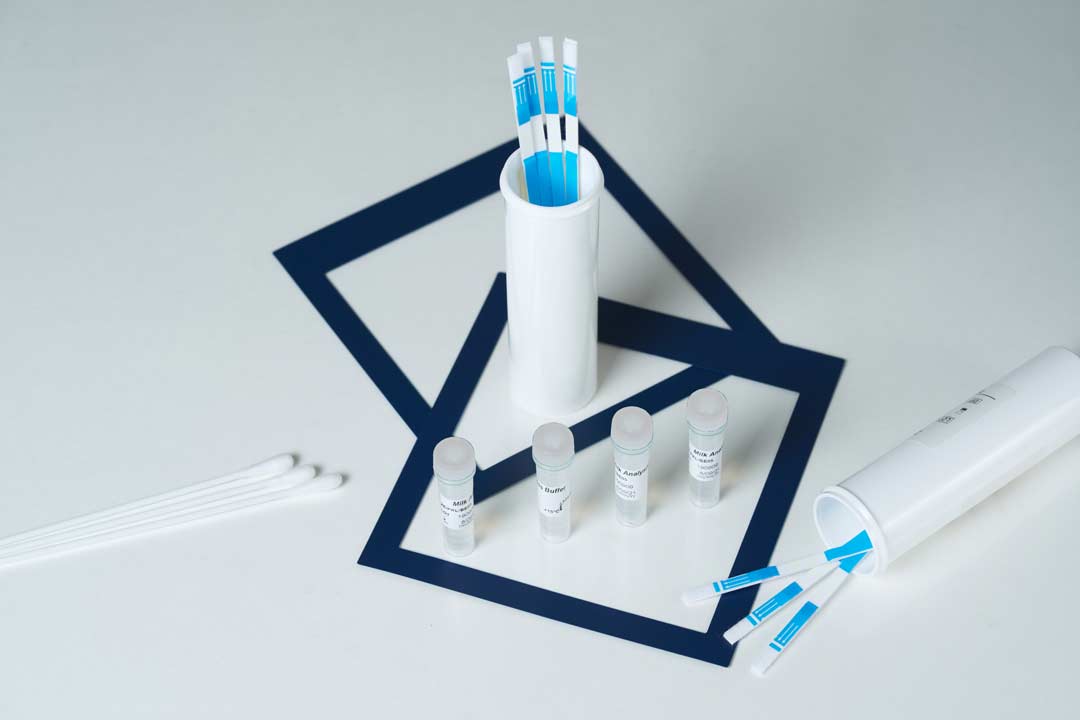 La rapidez y sencillez de los tests Proteon Express permite adaptar el análisis de alérgenos al momento y lugar que necesites. La detección simultánea de Caseína y β-lactoglobulina en la misma tira reactiva y en dos bandas diferenciadas, es especialmente útil en situaciones en que se desconoce la fuente de leche, tales como el control a proveedores o en industrias en las que coexisten distintos procesos productivos que utilizan leche o alguno de sus subproductos (lactosuero o caseinatos). Si tus productos están altamente procesados Proteon Duo Milk te ayuda a detectar la presencia de leche gracias a la resistencia de las caseínas a altas temperaturas.