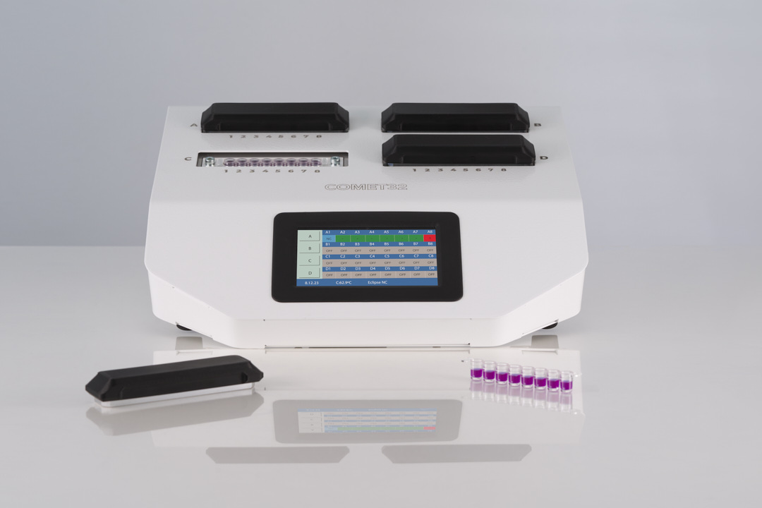 - Resultados: interpretación visual o automática con lector IRIS y envío de resultados automático (Wifi/Bluetooth/4G)